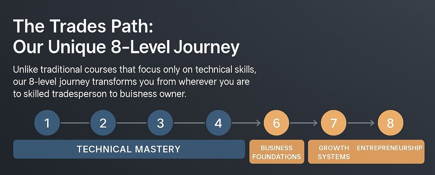 We're not just another trades course. We transform ordinary people into business owners with a proven system.